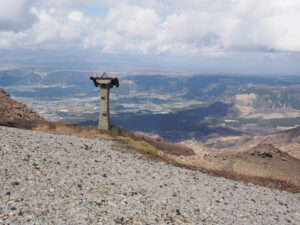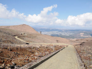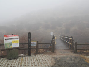 阿蘇山ロープウェーの遺構です。世界初の活火山ロープウェーとして 1958年に開業。阿蘇山の活発な火山活動により、何度も運行休止と再開を繰り返し、2014年の噴火や2016年の熊本地震、その後の大規模噴火によって駅舎や施設が決定的なダメージを受けましたとのこと。修復が困難と判断され、残念ながら2019年に正式に廃止となりました。仙酔峡登山口はロープウェイの起点駅だったのですね。その後、無地下山できました。