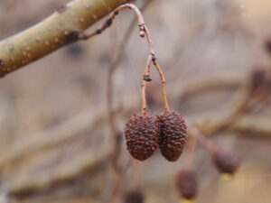 カバノキ科ハンノキ属の 「ヤシャブシ(夜叉五倍子)」。ヤシャブシは荒地でも育ちやすいため、阿蘇のような火山地形や斜面の崩壊地などでよく見られます。根に根粒菌(こんりゅうきん)をもち、痩せた土地を肥やす役割も果たす「山の守り神」。高岳東峰の頂上付近でもありました。