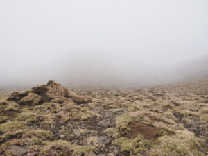 舗装路からすぎに岩場へ。岩は溶岩(地面)にくっついているので動かない。まるで岩は紙やすりの砥粒のよう。歩きやすそうで歩きにくい。凹凸は脚に負担がかかります。