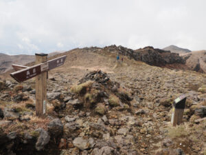 中岳と南岳の分かれ道。中岳はすぐそこだけとちょうどお昼で込み合っているから南岳(左)へ進む。
