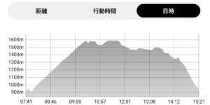 15分ほどで高岳東峰(1579m;10:31)。山頂を示すシンボルはありません。