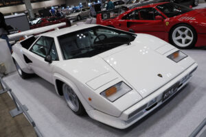 ランボルギーニ・カウンタック LP500S。4.8L V型12気筒エンジンを搭載。先代の「LP400S」から排気量を拡大し、最高出力は 375HP に向上。 大きなリアウイングや張り出したオーバーフェンダーがLP500Sの証。1982年から1985年の間にわずか 321台だけ製造された限定品。サーキットの狼ではハマの黒ヒョウの愛車