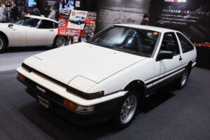 AE86 トレノGTV。トヨタはヘリテージ活動としてAE86等のパーツを供給しています。大事に乗ってくださるユーザーさんをサポートすることでトヨタ車の品質が性能が長期間保つこともアピールできます。