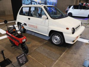 シティ・ターボII(通称:ブルドッグ)と、そのラゲッジスペースに積載できる折りたたみ式原付バイクのモトコンポ。インタークーラー付ターボを搭載し、ワイドフェンダーで武装したホットハッチ。学生時代には買えない高根の花でした。