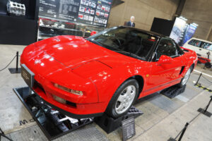 初代ホンダNSX。世界初のオールアルミ・モノコックボディ。フェラーリと比べると一回り小さく、取り回しが良さそうな感じです。