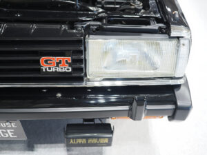元祖ターボと言えばこのジャパン。5代目スカイライン、通称「スカイライン ジャパン(C210型)」の2000GTターボ。角目2灯ヘッドライトにフロントグリルに輝く赤い「GT TURBO」の文字が誇らしげ。6気筒のL20E-Tエンジンは大きくて重そうでした。