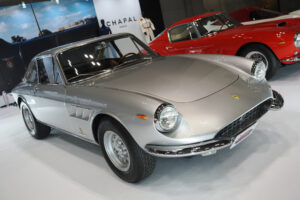 シルバーの美しい1台は、フェラーリ 330 GTC 。1966年から1968年にかけて生産されたモデルで、洗練された大人のためのGT。ピニンファリーナによるデザイン