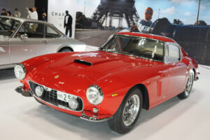 隣にフェラーリ 250 GT ベルリネッタ SWB(Short Wheelbase)。1950年代後半から60年代初頭にかけて製造された、フェラーリの歴史の中でも最も美しく、かつレースでも輝かしい成績を収めた伝説的なモデル。ピニンファリーナによるスタイリング