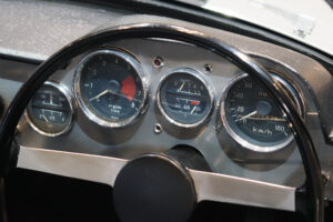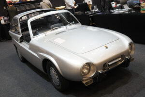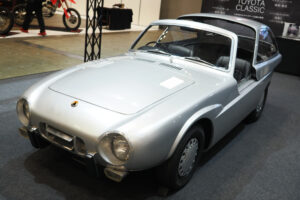 1962年の全日本自動車ショーに出品されたコンセプトカー、「トヨタ パブリカスポーツ」。キャノピー全体がスライドして乗り降りする戦闘機のようなスタイル(初めて見ました)。メーターもスポーティー