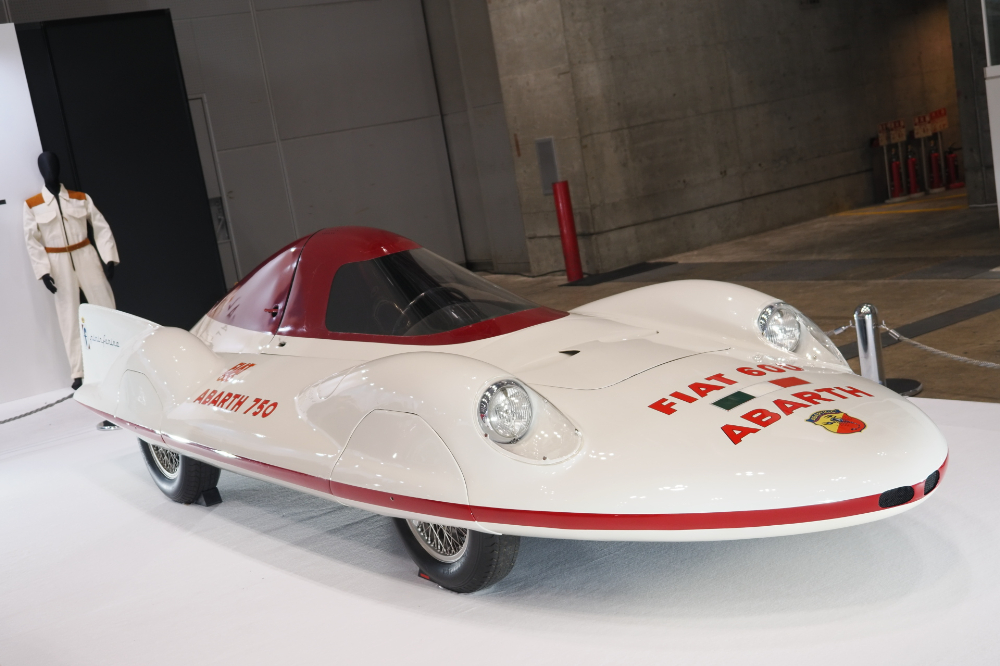 入口で最初に迎えてくれたのがフィアット・アバルト 750 レコード・モンツァ・ベルリネッタ。1950年代後半に速度記録(スピードレコード)を樹立するために開発された、空気抵抗を極限まで減らしたエアロダイナミクス・フォルムが特徴。ボディのデザインと製作はピンニンファリーナが担当