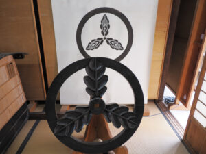 土佐藩主・山内家の家紋「丸に土佐柏(まるにとさかしわ)」。柏の葉を3枚組み合わせたデザイン。柏は新しい芽が出るまで古い葉が落ちないことから「家系が絶えない」という縁起物で武家に好まれました。三菱の『スリーダイヤ』は、山内家の三階柏と、岩崎弥太郎(高知出身の三菱創業者)の岩崎家の三階菱を組み合わせたデザインと言われています。