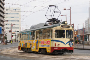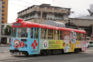 とさでん交通 600形 608号で、香美市立やなせたかし記念館(アンパンマンミュージアム)の広告車両