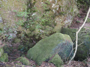 岩の隙間から一年中冷たい風が吹き出している天然のスポット。夏場でも5度〜10度前後と非常に冷たく、かつては蚕の卵を貯蔵する「氷室(ひむろ)」として利用されていましたようです。
