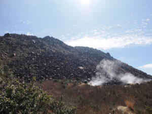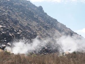 反対側(東側)に平成新山。ドーム下部から噴気が上がっています。
