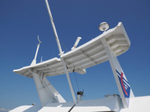 SSTHは Super Slender Twin Hull(超細長双胴船) の略称。1980年代後半から90年代にかけて、IHIと東京大学(宮田秀明教授ら)が共同で開発した革新的な高速船です。超細長の船体2つからなるアルミ合金製の船体(ハル)をデッキで繋いだ形状。大型化も容易。IHIに入社した当時に開発中で、そのカッコよさに一目ぼれ。オーシャンアローは現役SSTHとして頑張っているのです!