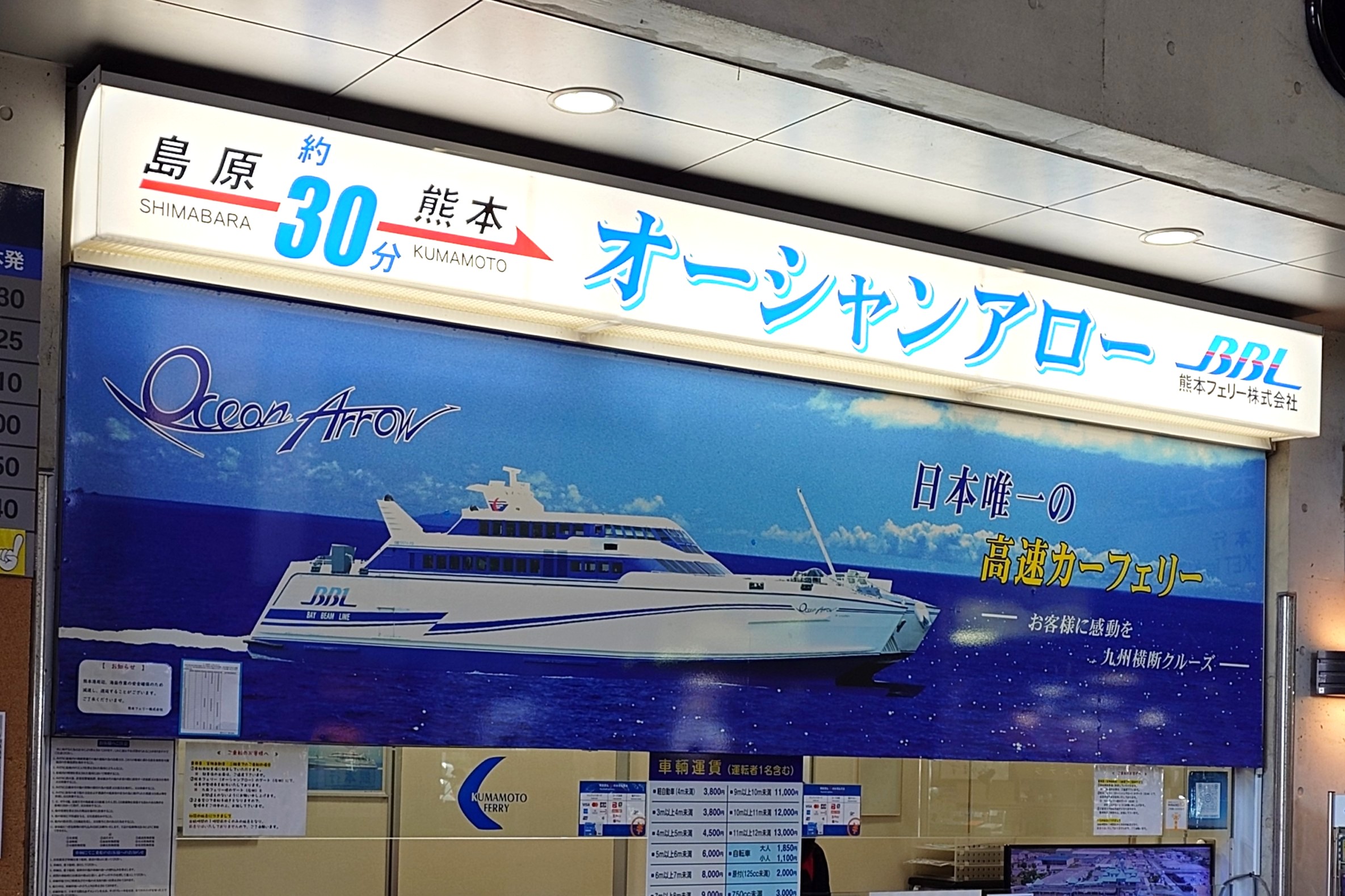 お目当ては熊本フェリーのオーシャンアロー SSTH70。IHI製の高速フェリーです。ギリギリ間に合いました!
