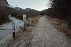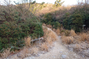 塚原越えを左へ。樹林帯の山道に入っていきます。