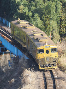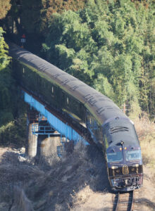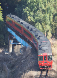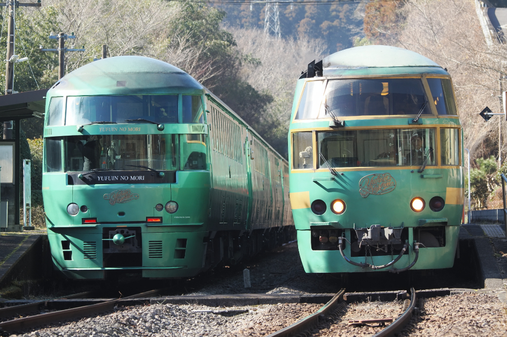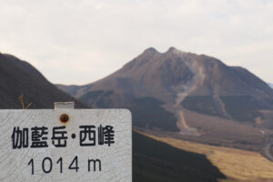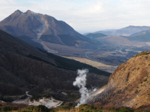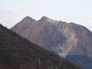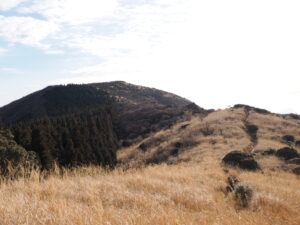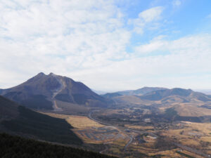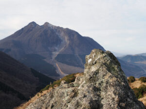 振りむけば由布岳(双耳峰)が見えます。山頂を拡大!