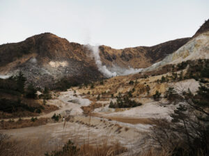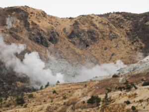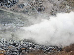 左を見ると噴気。硫黄を含むので硫黄臭がします。
