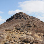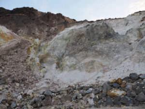 山頂方面の崖は硫黄が取れそうな黄色の岩肌