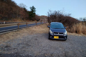 藪を超え、泥濘でぬかるんだ登山道をよろよろ進み、大曲登山口に到着。案の定、駐車場にはセルボ1台でした。奮発して高速で一気に北九州まで。無事に寮にたどり着きました。