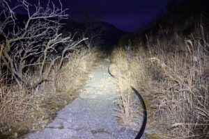 電源ケーブルを発見。これをだどって下山しよう!ヘッドライト・オン!