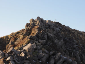 久住山(1786.5m)に到着。気温8℃。歩いているから暖かく感じる。15時過ぎて夕暮れが迫ってくる。星生山どうしようか。もう二度とくじゅうに来れないかもしれないと思うと無理してしまう貧乏性