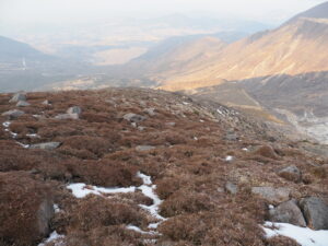 雪の残る岩場を登り久住分れに到着