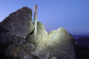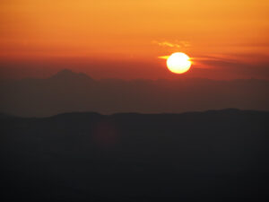 祖母山の西に日が沈みました。ヘッドライト・オン!
