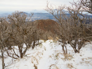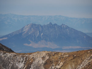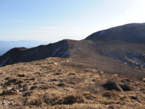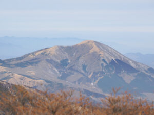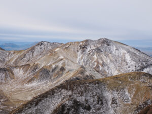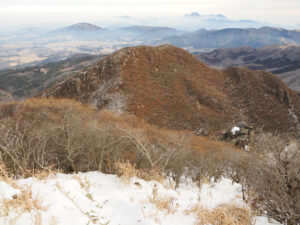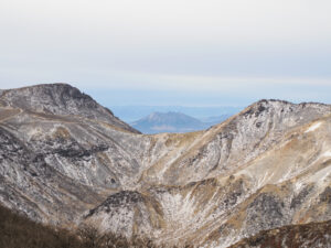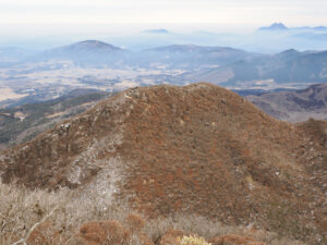 南の連山も美しい。特に雪交じりの星生山。次は本峰へ
