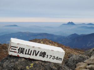 諏蛾守越から三俣山を目指し、まず、西峰(1678m)に到着(7:42)