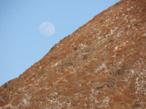 振り返ると天狗ヶ城の山の端に満月が登り、