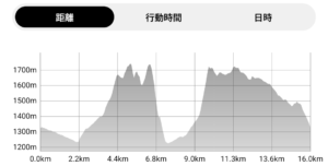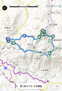 沓掛山(1503m)を経由して、牧ノ戸峠の駐車場でセルボと再会しました(18:24)。