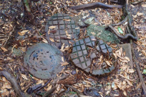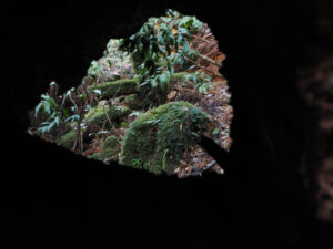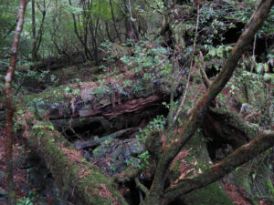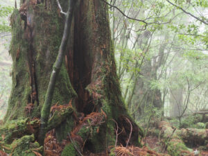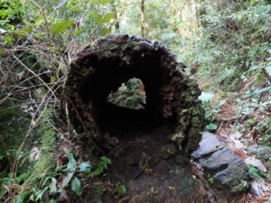 朽ちた杉を覗くとウィルソン株のよう