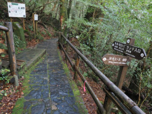 ヤクスギランドの入り口から協力金(500円)をお支払いしスタート(7:08AM)