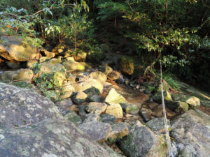 いきなり渡渉。増水すると渡れないようですが、今日は沢の流れは少なく、問題なし。