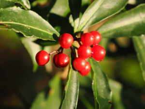 マンリョウ。赤い実を「お金(小判)」に見立て、富の象徴とされる縁起物