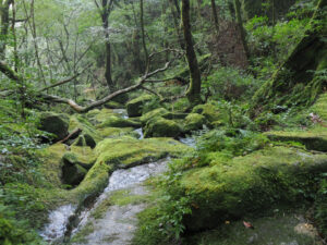 苔むした水辺の美しい風景。水を補給