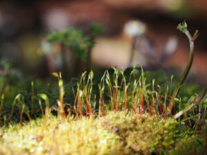 苔の胞子体「苔の花」。苔が子孫を増やすための大切な器官
