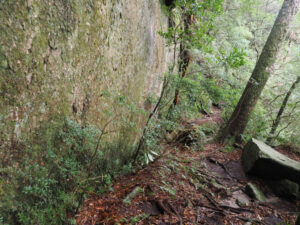 ロープを使いトラバース。下は崖