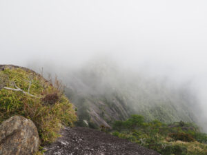 頂上付近で急下、急登。ロープ伝いの全身運動が必須