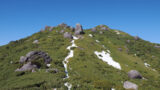 頂上付近で急下、急登。ロープ伝いの全身運動が必須